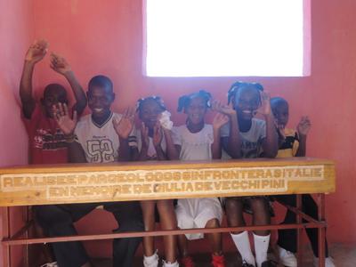 nel primo anniversario della scomparsa della Signora in memoria della quale sono stati realizzati (Giulia De Vecchi), vengono oggi inaugurati i banchi di scuola per una piccola scuola di Borgne, Montrouis (Haiti), dove prima di oggi i bimbi erano costretti a studiare seduti a terra, con i quaderni sulle ginocchia.