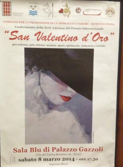 Sabato 8 marzo, a Terni, presso la sala Blu di Palazzo Gazzoli, siamo stati premiati con il Prestigioso Premio Internazionale San Valentino d'oro. Non siamo sicuri di meritarlo, ma siamo sicuramente molto onorati e orgogliosi di averlo ricevuto. Un ringraziamento speciale va alla famiglia Pensa e a tutto il comitato, per aver scelto, tra tante realtà che si distinguono nel campo del sociale, proprio noi.