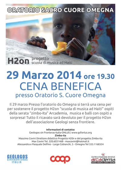 Sabato 29 marzo, alle ore 19,30, presso l'oratorio del Sacro Cuore di Omegna, in Via De Amicis, si terrà una serata concerto per promuovere e sostenere il nostro Progetto H2On, una scuola di musica ad Haiti. Vi aspettiamo!